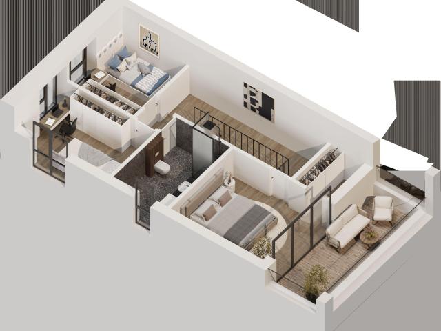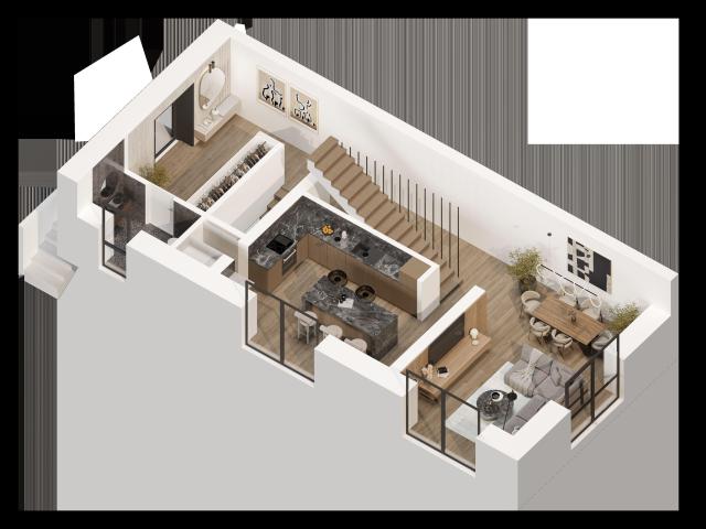 - vandentiekio ir kanalizacijos įvadai atvesti į vonios kambarį ir virtuvės zoną;